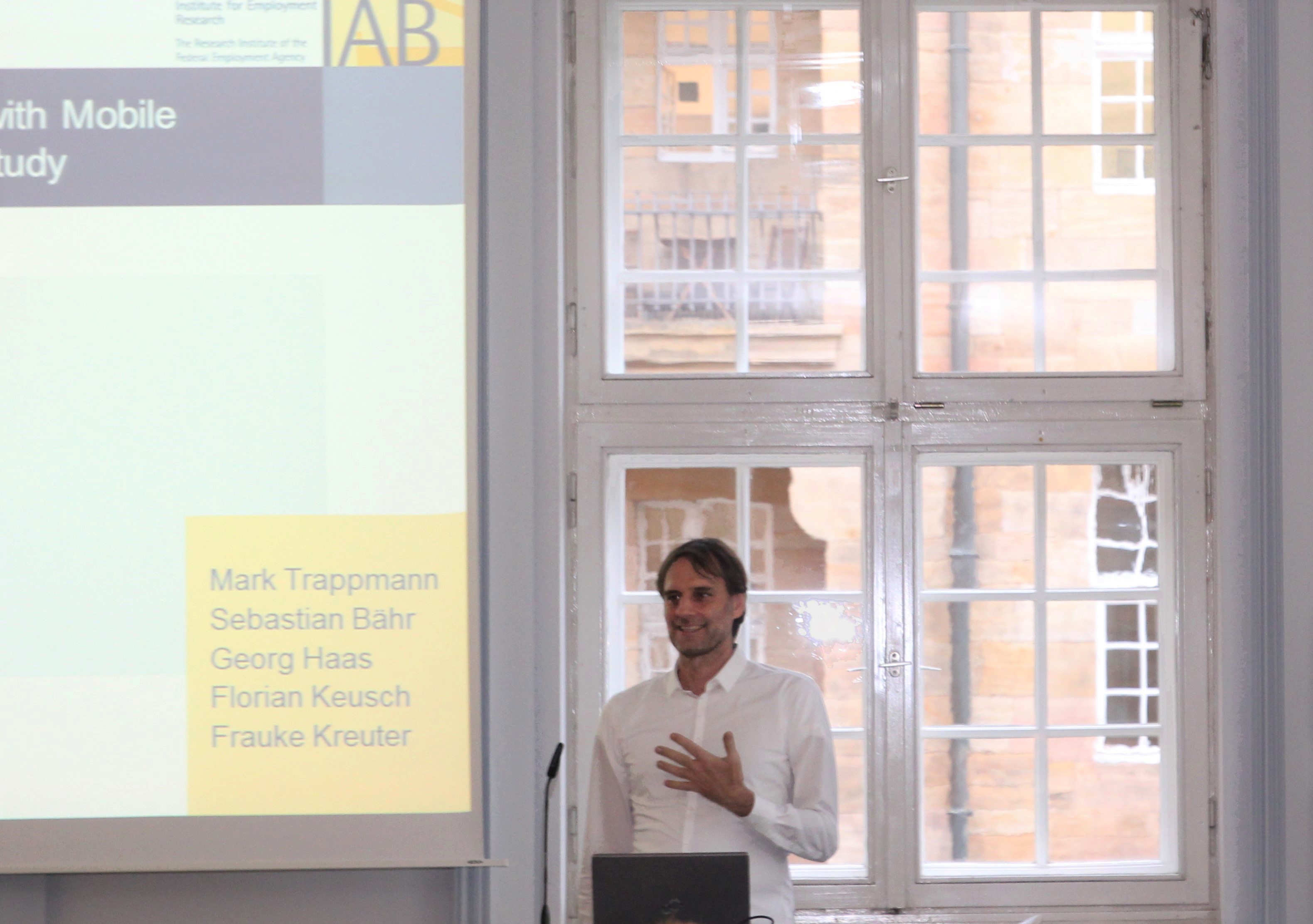 Prof. Dr. Mark Trappmann stellte die Machbarkeitsstudie zum Einsatz einer Android-Applikation in der Panelstudie PASS vor.