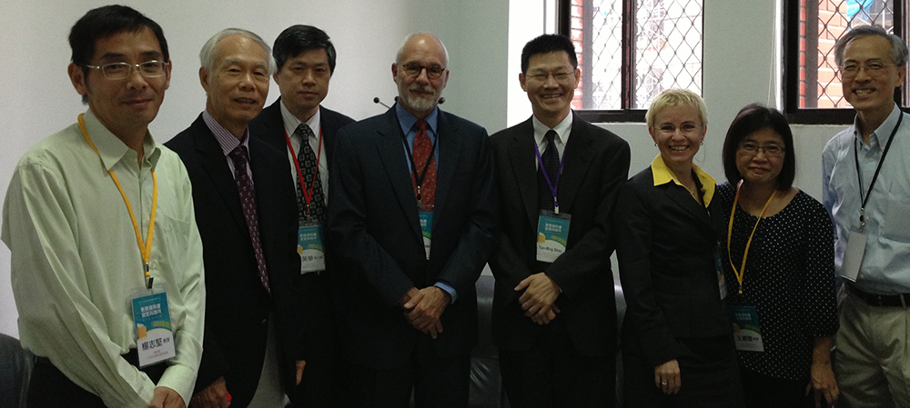 Foto (v.l.n.r.): Chih-Chien Yang (Chair, Discipline of Education, H&SS Division, National Science Council), Samuel S. Peng (Honorary Chair Professor, National Tsing Hua University), Ying-Hwa Chang (Acting Executive Officer of Center for Survey Research, RCHSS, Academia Sinica), Mark Schneider (Vice President, AIR), Ting-Ming Hsiu (Dean of Education College, NTNU), Jutta von Maurice (Executive Director of Research NEPS, Bamberg University, Germany), Li-Yun Wang (Associate Professor, Center for Educational Research and Evaluation, National Taiwan Normal University), Tam Tony Hong-wing (Professor, The Chinese University of Hong Kong).