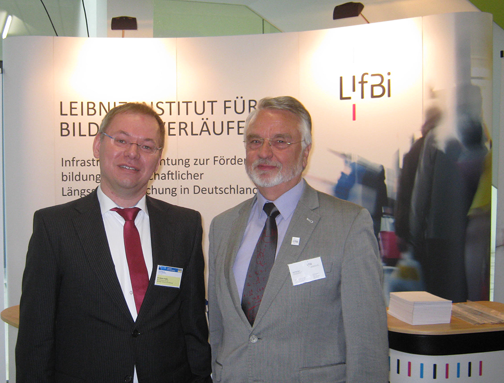 Die deutschen Lehrerbildungszentren sind seit 2007 in einem freiwilligen Kooperationsverbund zusammengeschlossen. Wesentliche Ziele dieses Zusammenschlusses sind u. a. der Informationsaustausch über Entwicklungen der Lehrerbildung im Ländervergleich sowie die Stärkung der Professionalisierung des Personals im operativen Bereich der Lehrerbildungszentren. Die jährlichen Treffen an wechselnden Standorten thematisieren grundlegende Forschungsfragen in allen Bereichen der Lehrerbildung und befördern die Weiterentwicklung der Qualitätssicherung in den Lehramtsstudiengängen. In diesem Umfeld konnte LIfBi am Informationsstand Ansätze und den Fortschritt der Studien, insbesondere des Nationalen Bildungspanels, präsentieren und erste Ergebnisse mit Praktikerinnen und Praktikern sowie Forschenden aus dem Bereich der Lehrerbildung diskutieren.